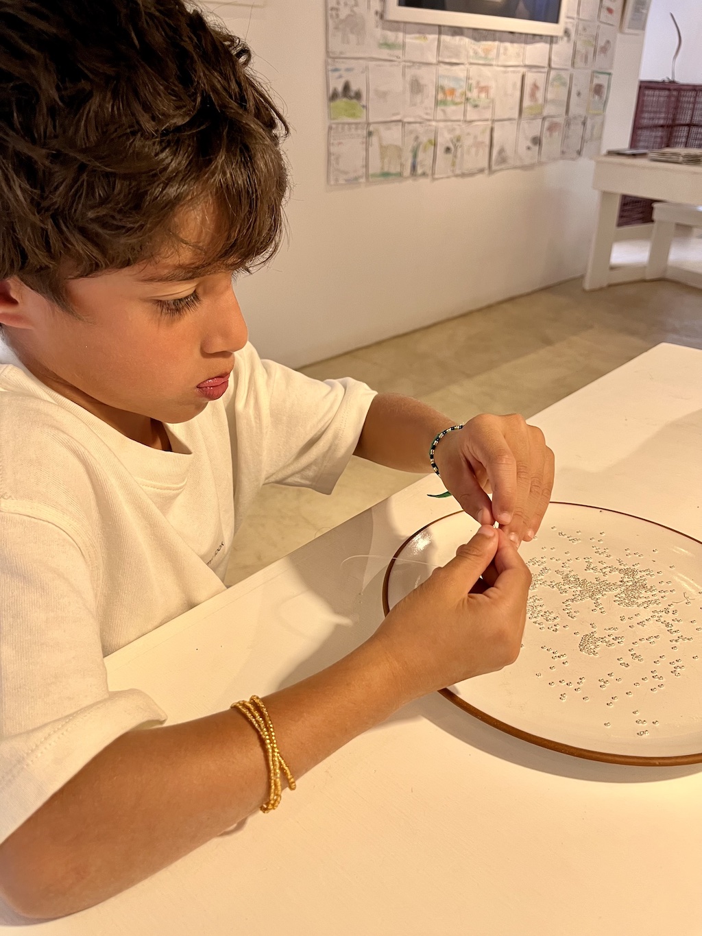 Während mein Enkel sich ein Armband aus den Perlen basteln darf, erklärt sie mir das Community Projekt. Es heißt SATUBO-Initiative und fördert die finanzielle Unabhängigkeit von einheimischen Frauen in den Stämmen rund um Laikipia. Perlenschmuck ist dort ein traditionelles Handwerk und speziell der Brautschmuck ist wunderschön – aber auch sehr schwer.