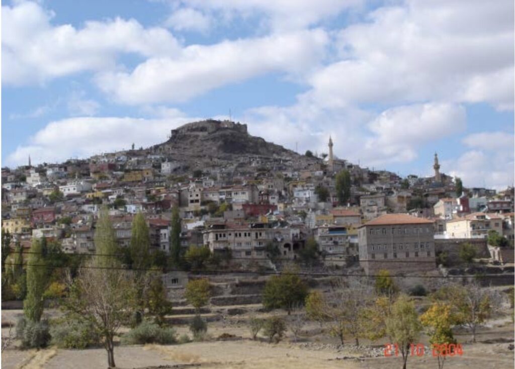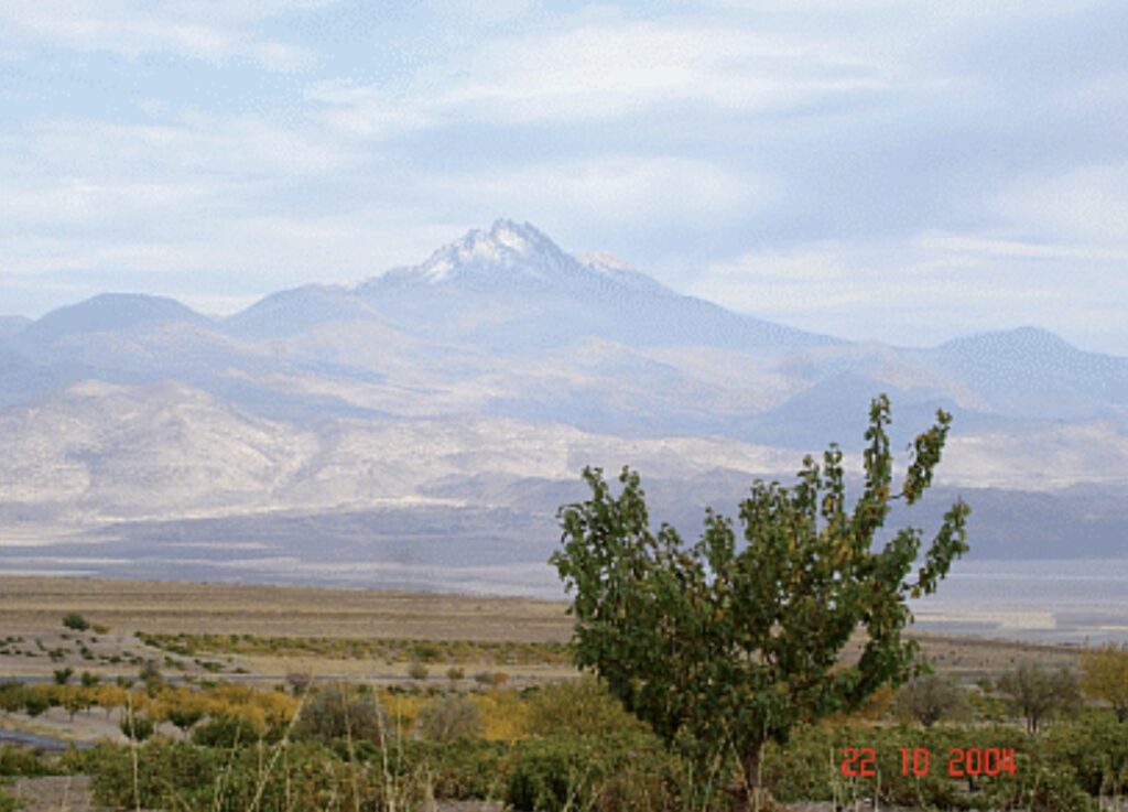 Weiter geht es auf enger, aber landschaftlich schöner Straße Richtung Kayseri. Es herrscht geringer Verkehr, so dass wir uns auf kleine Eindrücke konzentrieren können: überall wächst Wein, und Dutzende von langschwänzigen Elstern kreuzen unseren Weg. Gelegentlich müssen wir Kühen und Schafen ausweichen. Nach Überquerung eines Passes (1500 m) fahren wir hinunter in die weite Ebene und sehen von nun an für längere Zeit den Vulkan Erciyes, dessen Gipfel verschneit ist.