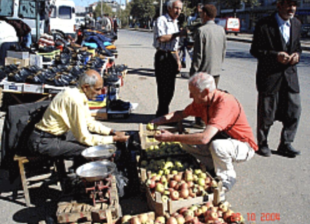 Der nächste Stopp findet im 1500 m hohen Bitlis statt – eine Mischung aus Lokalkolorit und Müllhalde. Fritz steigt auf eine Burg; ich spaziere zum Zentrum, d.h. auf den weiträumigen Markt, wo mir besonders das riesige Kartoffel-, Zwiebel- und (wiederum) Weißkohlangebot auffällt. Ich handele etwas und kaufe dann für 1 Million TL (1 Euro) zwei große Tüten mit Knoblauch, Schoten, Paprika und (angeblich milden) Peperoni, Zutaten für unser nächstes Abendessen. Dann spricht mich ein beredsamer Mann an, der sich als Bauingenieur vorstellt und fließend Englisch kann – sehr zur Bewunderung seiner Landsleute, die immer zahlreicher werden und einen großen Kreis um uns bilden. Im Übrigen sind die Teestübchen zwar, wie immer, von alten Männern besetzt – jedoch wird nichts verzehrt, denn es herrscht Ramadan (türkisch: Ramasan).