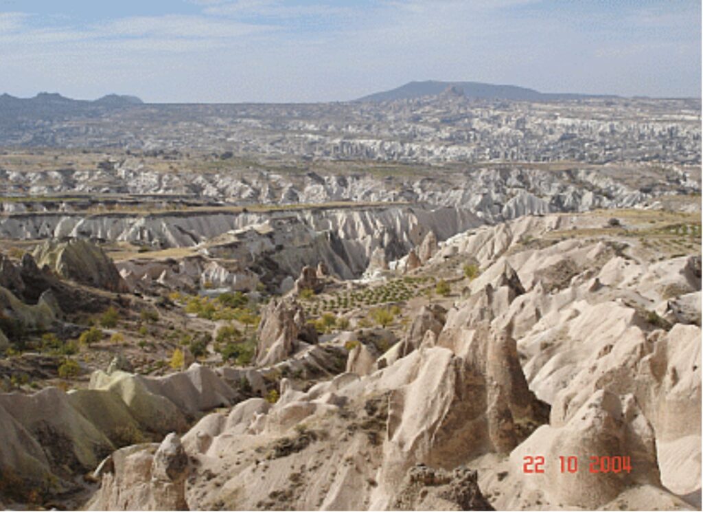 Zur Geschichte dieser Gegend: durch Ausbrüche der Vulkane Erciyes (3916 m) und Hasan Dagi (3268 m) vor drei Millionen Jahren wurde die gesamte Nevsehir-Hochebene (ca. 1200 m hoch) mit Tuff bedeckt, einem weichen Stein aus Lava, Asche und Schlamm. Wind und Regen haben daraus eine surrealistische Felslandschaft geschaffen, deren Farben von leuchtendem Rot über gelbe und ockerfarbene Töne bis zum Grau-in-Grau reichen. Der Nationalpark Göreme offenbart eine Symbiose von Natur und Mensch. Die ersten Wohnstätten sind etwa um 4000 v. Chr. in die Felsen gehauen worden. Die frühen Christen, später die Byzantiner, haben Felsenklöster und kleine Kirchen hinzugefügt.