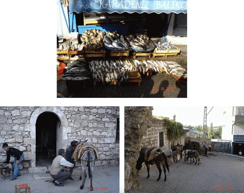 In Silvan machen wir Halt und schlendern durch den Markt, dessen „buntes Treiben“ wörtlich zu nehmen ist. Das übliche Angebot an Gemüse und Obst (immer wieder riesige Weisskohlköpfe) wird diesmal ergänzt durch eine sehr appetitliche Fischauswahl, die vom Schwarzen Meer (Kara Deniz) stammt. Übrigens tauchen hier immer häufiger Schuhputzer auf, die dem Kunden während des Putzens ein Paar Ersatz-Sandalen anbieten.
