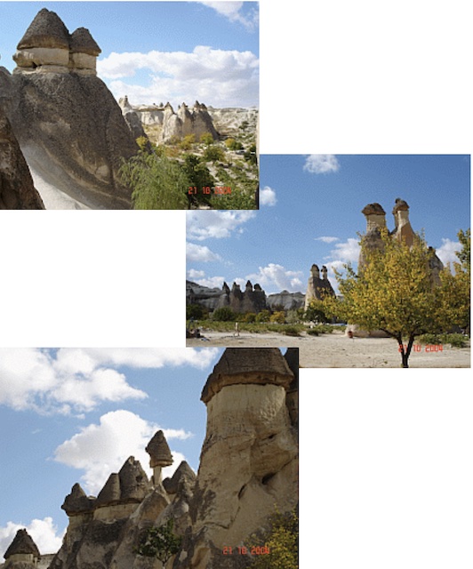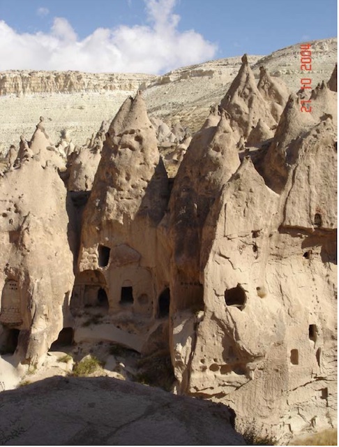 Zur Geschichte dieser Gegend: durch Ausbrüche der Vulkane Erciyes (3916 m) und Hasan Dagi (3268 m) vor drei Millionen Jahren wurde die gesamte Nevsehir-Hochebene (ca. 1200 m hoch) mit Tuff bedeckt, einem weichen Stein aus Lava, Asche und Schlamm. Wind und Regen haben daraus eine surrealistische Felslandschaft geschaffen, deren Farben von leuchtendem Rot über gelbe und ockerfarbene Töne bis zum Grau-in-Grau reichen. Der Nationalpark Göreme offenbart eine Symbiose von Natur und Mensch. Die ersten Wohnstätten sind etwa um 4000 v. Chr. in die Felsen gehauen worden. Die frühen Christen, später die Byzantiner, haben Felsenklöster und kleine Kirchen hinzugefügt.