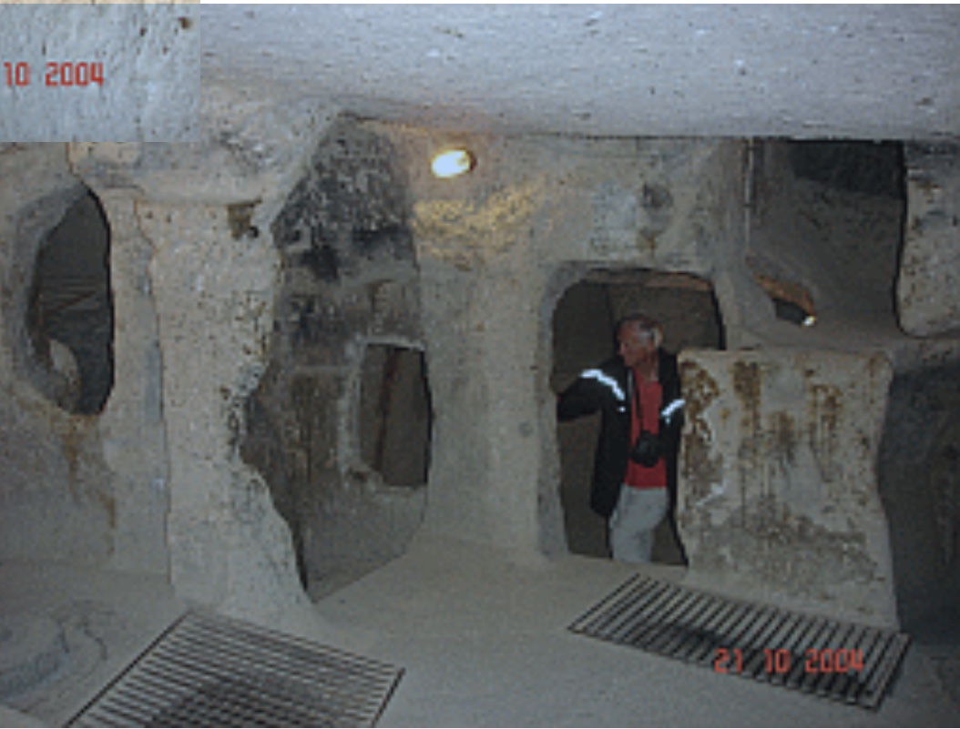 Nun fahren wir nach Kaymakli, eine der unterirdischen Städte im Süden von Nevsehir, die den Christen besonders im 7. Jh. Zuflucht vor ihren Verfolgern boten. In diesen sicheren Verstecken waren sie römischen Soldaten ebenso wie arabischen Invasoren und byzantinischen Bilderstürmern entkommen. Wir besichtigen tief unter der Erde einen solchen Ort, in dessen weitverzweigter Struktur man sich – ohne Hinweispfeile – hoffnungslos verlaufen würde. Auf mehreren Etagen sehen wir staunend das praktische Ergebnis dieser Überlebensstrategie: Vorratslager, Stallungen, Schlafräume, Küchen, Andachtstätten, Baderäume sowie eine hervorragende Belüftungsanlage.