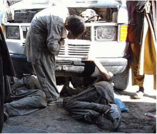 Wesentlich wichtiger: Ein Besuch im Krankenhaus, der von einigen Englisch sprechenden Augenzeugen organisiert wird, bringt ein zweites Aufatmen: der Verletzte kann nach Auskunft des Arztes bald entlassen werden. Die Atmosphäre beim Krankenhausbesuch und in der Werkstatt lässt sich aus deutscher Sicht nur schwer beschreiben, da in einer solchen Situation die Mentalitätsunterschiede zwischen beiden Völkern riesig sind: während wir ganz selbstverständlich auch die Frage nach Schuld und Unschuld stellen (der Mann war offenbar geistesabwesend auf die Hauptstraße gefahren), interessiert die Pakistanis vor allem der soziale Status der Beteiligten.