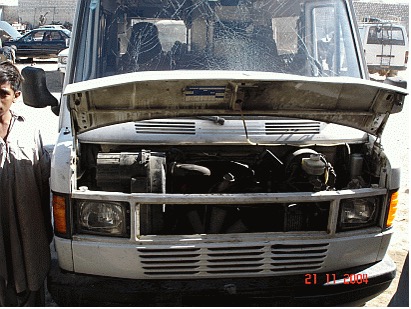 Heute ist ein trauriger Tag, denn wir sind in einen Unfall verwickelt worden, der uns viel Kummer und Kopfzerbrechen bereitet hat. Kurz hinter Loralei, auf dem Wege nach Dera Ghazi Khan, fährt uns ein Motorradfahrer völlig unerwartet, aus einer Seitenstraße kommend, vor den Kühler. Da wir in voller Fahrt auf der Fernstraße sind, hilft auch eine Vollbremsung wenig: der Motorradfahrer kommt mit leichten Kopfverletzungen ins Krankenhaus, sein Fahrzeug wird stark beschädigt, und unser Bus hat eine zersprungene Windschutzscheibe sowie einen kaputten Kühler, der ständig Wasser verliert.