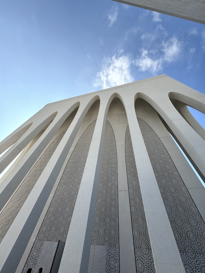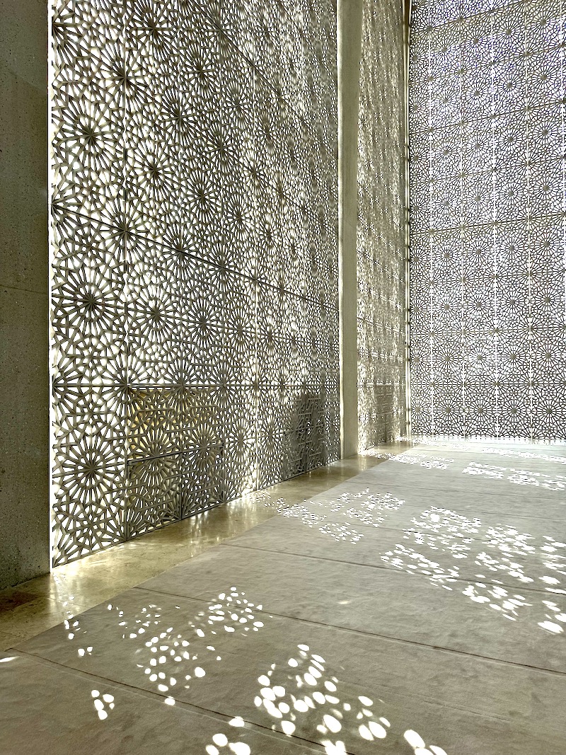 Eines der am meisten bewunderten Merkmale der islamischen Architektur ist die Mashrabiya: ein feines Gitterwerk, das so gestaltet ist, dass das Licht hindurchdringt. Die 470 Mashrabiya Paneele der Moschee sind individuell von Hand gefertigt.