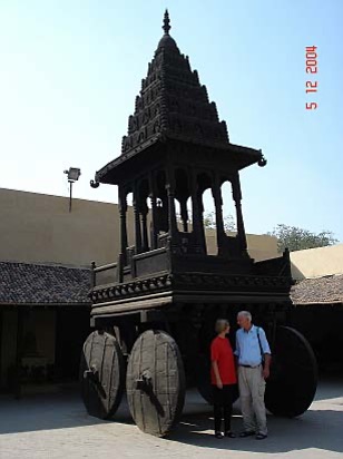 Wir frühstücken und laufen zum Gandhi-Museum. Dort ist das Leben des großen Mahatma in seinen wesentlichen Abschnitten durch Bild und Text ausführlich dargestellt. Gandhis politische Reden, sein Bekenntnis zur Gewaltlosigkeit (satyagraha), seine langen Märsche (allen voran der „Salzmarsch“ im Jahre 1930), seine Solidarisierung mit den unterprivilegierten Massen, seine Kleidungsstücke, ganz besonders aber seine symbolische Deutung der praktischen Arbeit am Spinnrad sind akribisch und engagiert in vielen Einzelexponaten festgehalten. Fritz interessiert sich besonders für die Entwicklung der Antriebstechnik von Spinnrädern und Webstühlen (manuell, halbautomatisch, vollautomatisch). Kein Wunder, dass das Spinnrad ein Teil der indischen Flagge geworden ist. Kein Wunder auch, dass dieses Museum fast täglich von Schulklassen besucht wird, da es – neben seinen interessanten Ausstellungsstücken – einen hohen erzieherischen Wert besitzt, z.B. das Spinnen als traditionelle Technik wie auch das Spinnen als traditionelle Sozialform indischer Dörfer (Charkha).