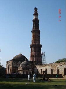 Nach kurzer Entspannung tuckern wir die lange Strecke nach Süden zum Qtab Minar, einem 72-m-hohen Turm aus Sandstein, der mit Zitaten aus dem Koran geschmückt, im 13. Jh. von Qtab- du-Din-Aibak, dem ersten moslemischen Sultan in Delhi, erbaut wurde, um seinen Sieg über Hindu-Könige zu feiern. Die benachbarte Quwwat-ul-Islam-Moschee gilt als die älteste in Indien und wurde aus Resten von zerstörten Hindu- und Jain- Tempeln erbaut. Qtab Minar erweist sich, zumal an einem Sonntag, als beliebter Ausflugsort für hiesige Familien. Mehrfach werden wir, vielleicht wegen unserer Haut- und Haarfarbe, von Unbekannten zu Foto-Terminen gebeten.