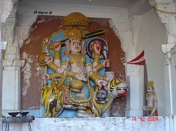 Kurz vor Erreichen von Jodhpur besuchen wir die ehemalige Hauptstadt Mandore, in deren einstigem Zentrum ein schöner großer Park liegt, versehen mit Tempeln, chattris, herrlichen Pflanzen, u.a. prächtigen Hibiscus und Bougainvillea sowie einem uralten abgestorbenen Mangobaum. Affen überall: große, kräftige Exemplare mit langen Schwänzen.