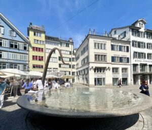 Mit ihrer intakten Altstadt und den beiden Flüssen Limmat und Sihl, ist Zürich eine wirklich interessante Stadt. Ihre hohe Lebensqualität verdankt sie einer Kombination aus hervorragender Infrastruktur, einem sauberen und sicheren Umfeld, Zugang zu Natur sowie einer vielfältigen Kulturszene. Damit ich Jacquelines Heimatstadt besser kennen lerne, hatte sie eine Altstadtführung für uns gebucht. Zürichs reiche Geschichte reicht bis in die Römerzeit zurück. Dies macht sich in der Altstadt bemerkbar. Sie ist gut erhalten und bietet zahlreiche historische Gebäude und Denkmäler, die von der langen Geschichte der Stadt zeugen. Orte wie der Lindenhof, das Grossmünster und das Fraumünster erzählen von der mittelalterlichen und frühneuzeitlichen Geschichte der Stadt. Und während dieser zweistündigen Führung durch die Altstadt höre und sehe ich erstmals die Brunnen von Zürich.