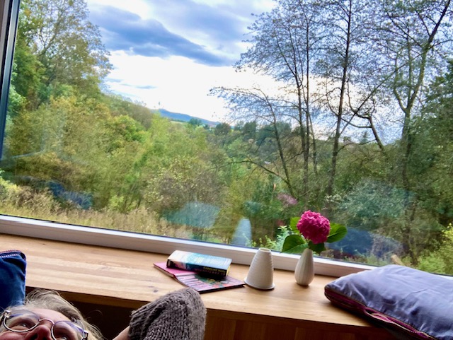 Aber habe ich Ablenkung vermisst? Nein. Zu wohl habe ich mich in der Ubuntu Lodge gefühlt. Es war so kuschelig, die Ausblicke in die Ferne und Sonnenuntergänge sind mega, ich habe lecker gekocht (in einer voll und liebevoll ausgestatteten Küche) und viel gelesen. Plus Spaziergänge gemacht, klar, wenn der Wald vor den Füßen liegt, oder?