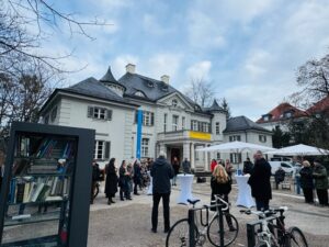 Elke liest gerne Bücher, sie findet die Idee Offener Bücherschränke klasse und liebt München (neben Köln, ist ja schon gut 🙂). All das passt wunderbar zusammen und als sie davon hört, dass nun die Bayerische Architektenkammer als erste Kammer ihrer Art einen Offenen Bücherschrank installiert, hört sie genau hin. Als sie dann auf LinkedIn sieht, dass sich auch Kammerpräsidentin Prof. Lydia Haack Zeit nimmt und den Schrank persönlich einweihen wird, ist ihre Neugierde erst recht geweckt.